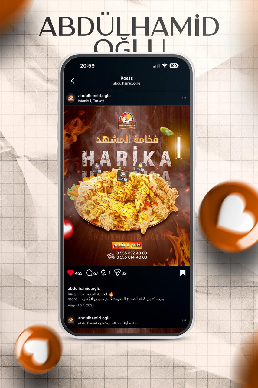 تصاميم سوشيال ميديا احترافية تعكس هوية المطعم وتبرز منتجاته.