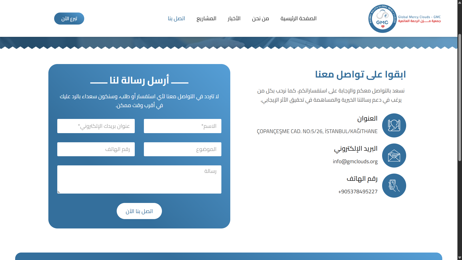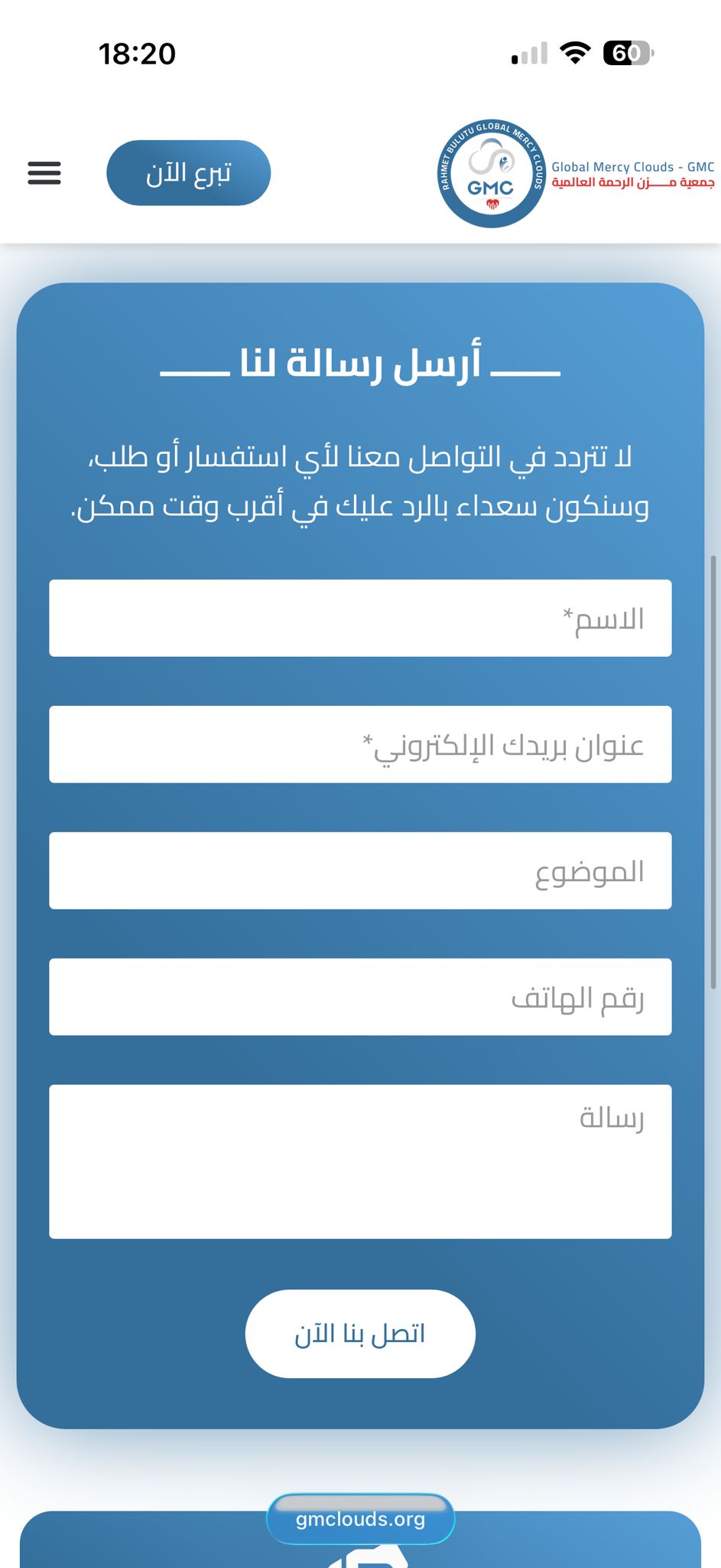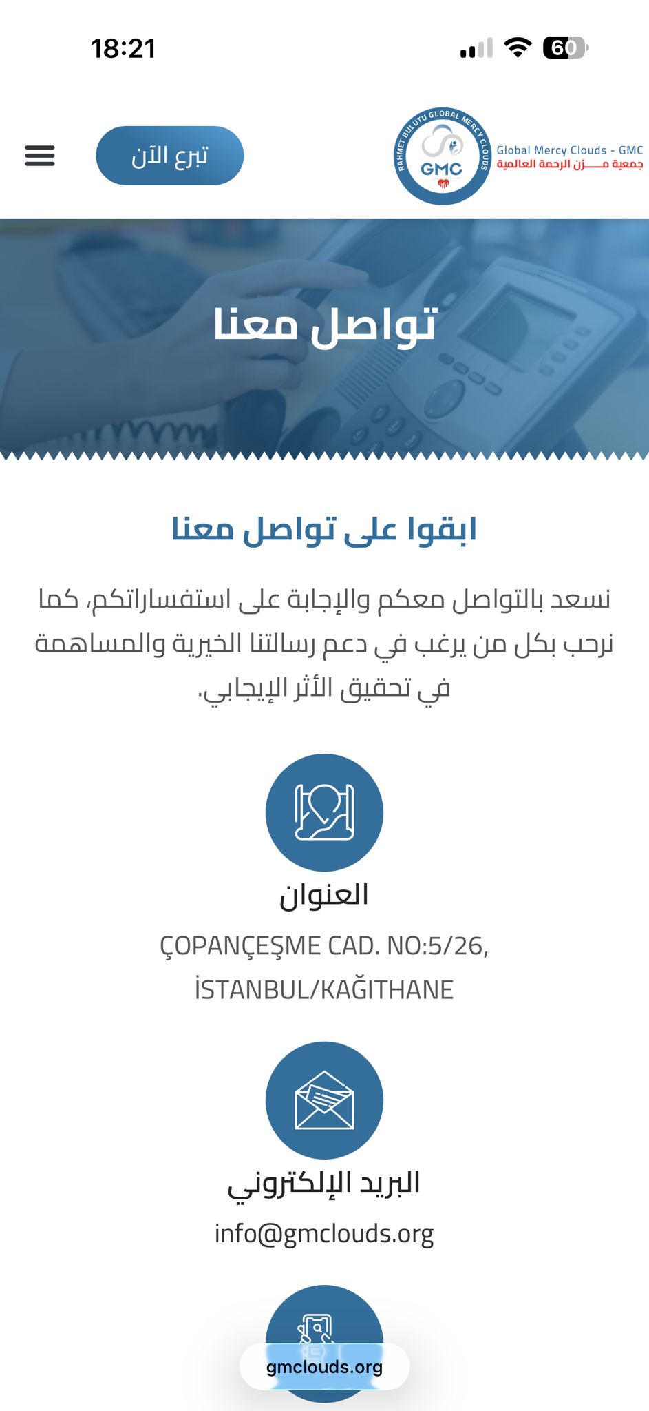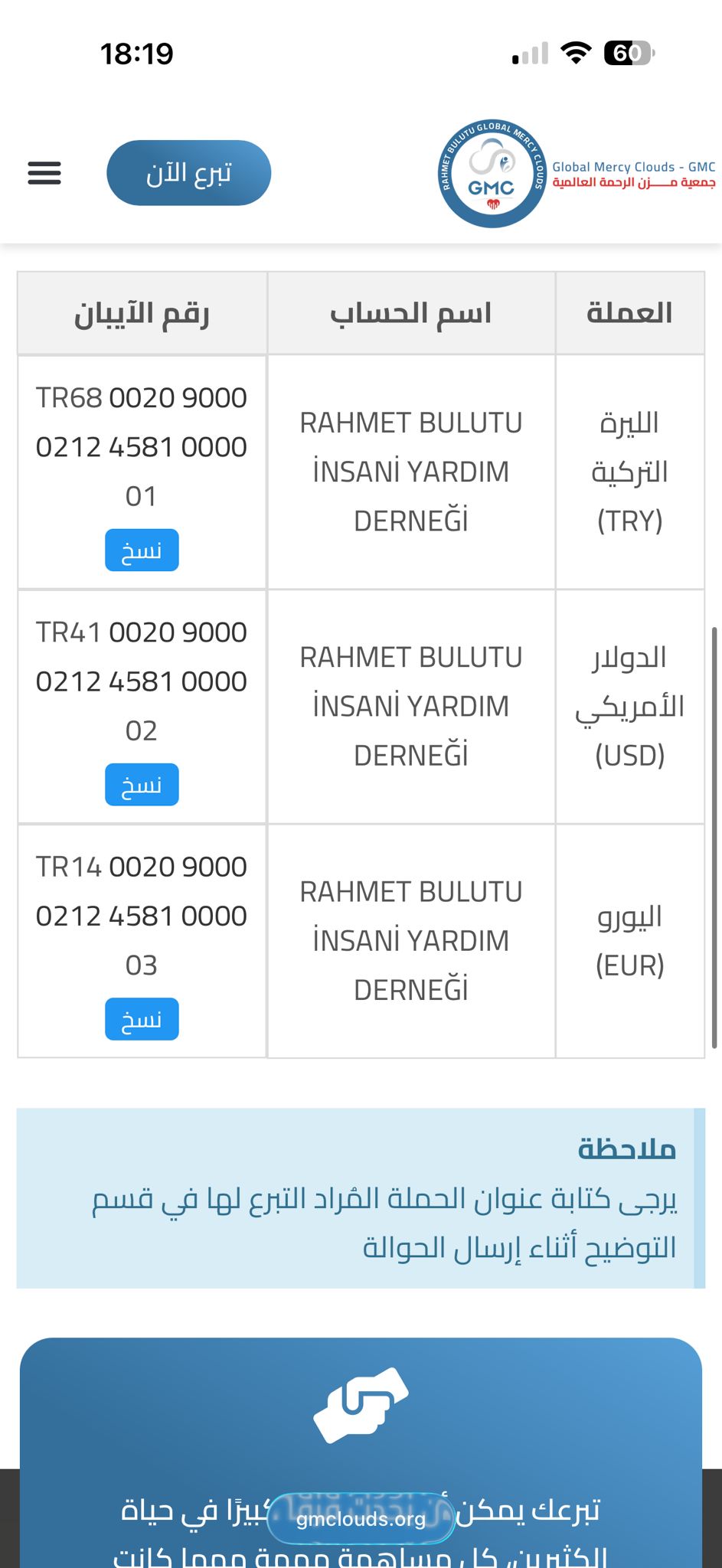 تنظيم واضح للحملات العاجلة مع سهولة الوصول لمعلومات التبرع.